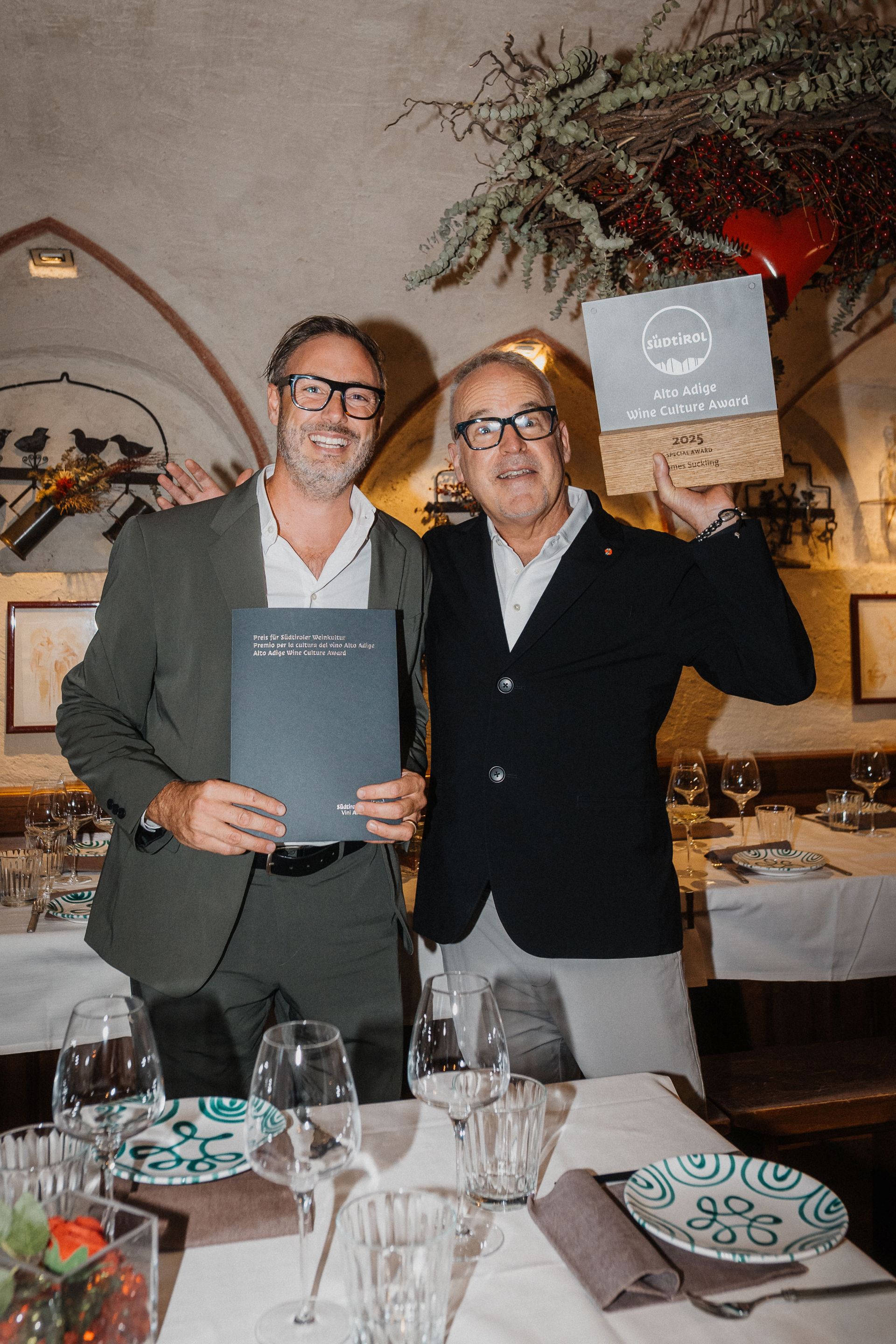 In recognition of the fact that he has accompanied the development of Alto Adige wines for more than 40 years and that he has promoted them to a wide audience not only in Europe and the United States, but also in Asia, the Consorzio Alto Adige Wines has now presented James Suckling with the Special Alto Adige Wine Culture Award. "This award is also a sign of our gratitude," Andreas Kofler noted, "for the ever watchful and - when necessary - critical eye with which he has followed and continues to follow the development of Alto Adige wine culture: without a scolding finger, without blinkers, but with passion and a great deal of commitment".